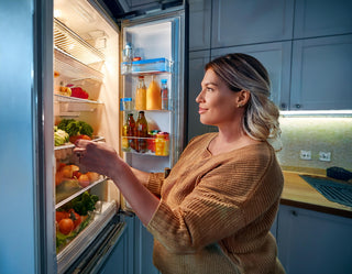 Stellen Sie diese Lebensmittel auf die höchsten Regale der Schränke oder auf die untersten Regale des Kühlschranks, damit sie weniger auffallen und schwerer zu erreichen sind. Aus den Augen, aus dem Sinn! Bewahren Sie Ihre gesunden Lebensmittel und Snacks auf Augenhöhe auf, damit Sie eher dazu greifen.